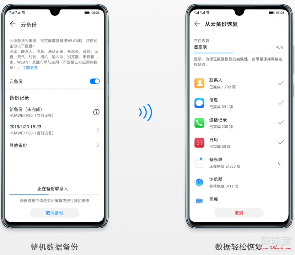 2、开启【云备份】,可以将照片、联系人、日历、备忘录、信息等重要内容自动进行备份,在手机丢失或换机时,可以将备份过的全部内容一键轻松迁移到新设备中。