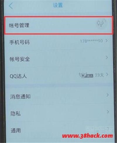 2.点击设置,找到账号管理