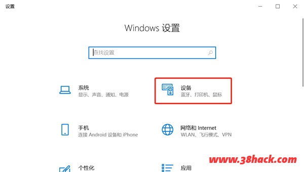 2、在设置选项中选择【设备】,进入蓝牙、鼠标、打印机等设置界面