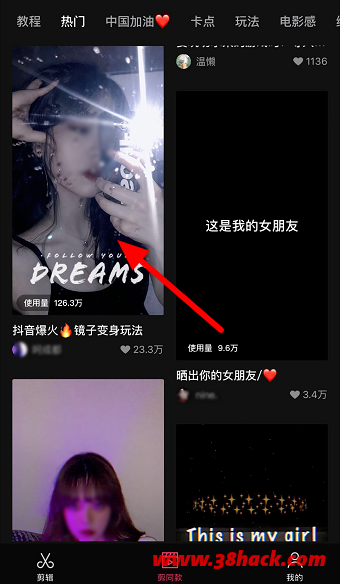 2、随后我们需要找到对应的特效模板,也就是所谓的抖音爆火镜子变身玩法,进入其中选择“剪同款”的功能,开始进行内容的编辑。
