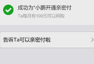 第四步,最后就是,开通了之后对方会受到短信提醒,然后在客户端里面也会显示亲密付的开通情况。