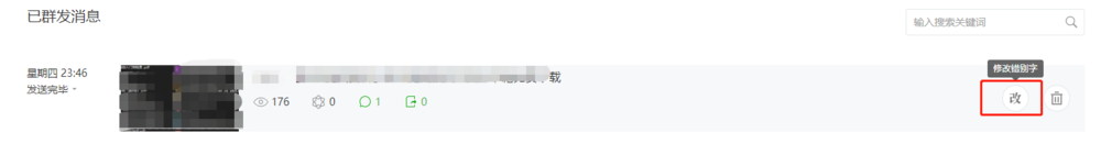 3、在所有的已群发消息模块,搜索到要修改的文章