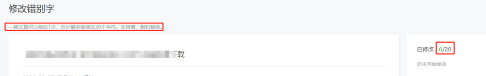 5、进入到修改文章页面,进行错别字的修改。需要注意的是,一篇文章只支持一次修改,且最多只能修改20个字符