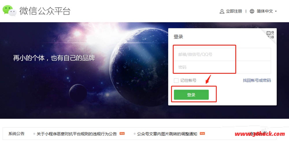 1、首先,在百度中搜索“微信公众平台”,在登录页面中输入正确的用户名和密码,点击登录