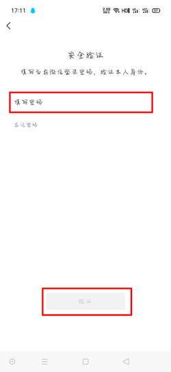 5、修改微信号之前,需要先进行安全验证,输入微信号登录密码,点击【验证】进入下一步,如果忘记密码点击【忘记密码】;