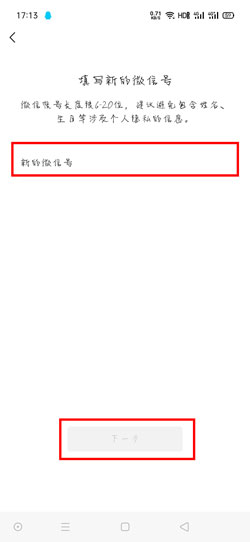6、最后,输入新的微信号,微信号需要设置长度在6-20位之间,建议避免包含姓名、生日等涉及个人隐私的信息。