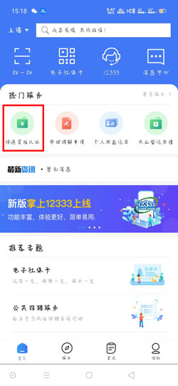 9、进入掌上12333APP的首页,然后点击【待遇资格认证】;