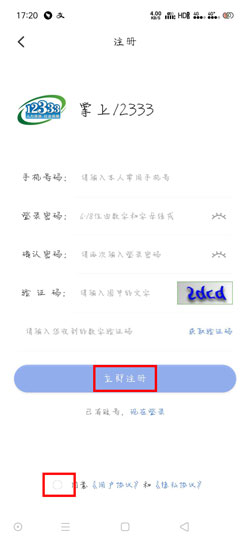 4、在注册页面将所有信息填写完成,确保填写的信息无误,勾选最下方的“同意……”,点击【立即注册】;