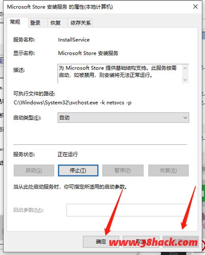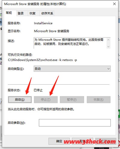 4、再点击服务状态下的启动按钮(无法点击启动先关闭应用商店,点击“停止”),启动Microsoft Store安装服务服务;