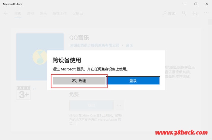 7、如果不想登录Microsoft账号,点击【不,谢谢】进入下一步;
