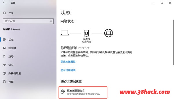 2、进入之后,我们在主界面可以看到这个选项,我们找到更改适配器设置内容,点击进入。