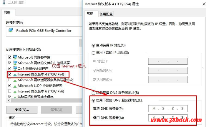 1、打开网络和共享中心——将DNS服务器地址修改为:4.2.2.2或是4.2.2.1。
