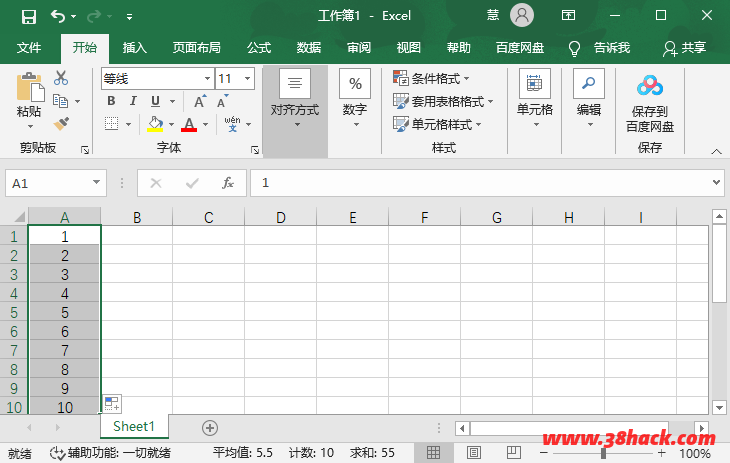 1、以Microsoft Excel表格为例,首先随便打开一个空白Excel表格,点击一个空白格,输入数字1;