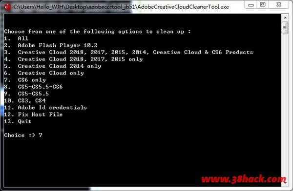 3、选择你需要卸载的软件,键入相应的数字,比如我卸载cs6版本,键入7。