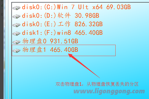 2、运行之后,双击需要还原的磁盘,进行后续的操作。
