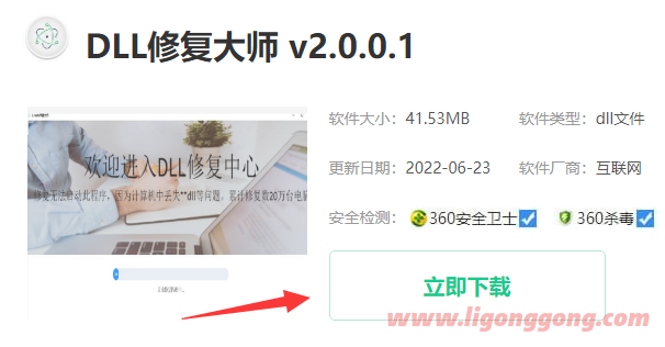 1、首先,让我们点击传送门,下载一个dll修复大师。