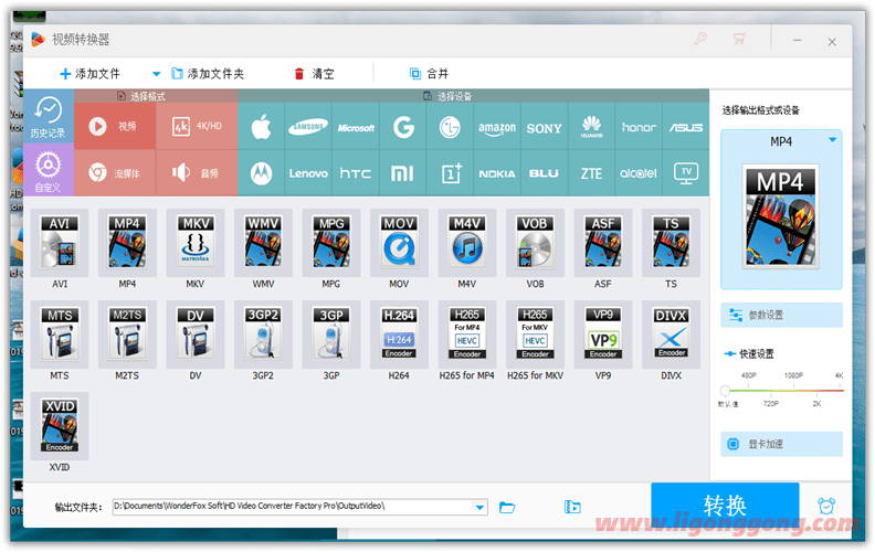HD Video Converter Factory是一款被誉为国际上转换速度最快的高清视频转换软件。这款软件支持超过300种视频格式的转换,提供了多项强大功能,包括视频转换器、视频合并、视频马赛克、视频下载、屏幕录像、GIF制作、图片转视频以及铃声工具等。