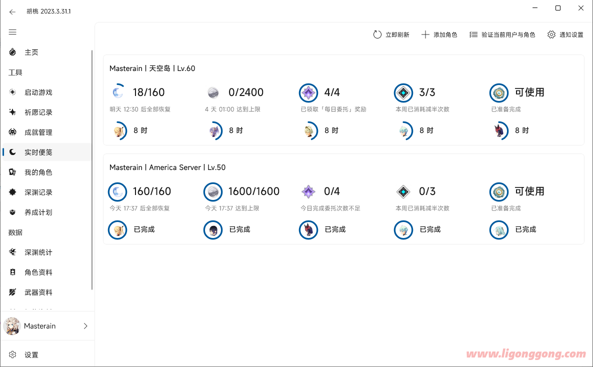 胡桃工具箱支持多个米游社帐号保持登录状态并为每个帐号在各个功能中分别创建档案,玩家可以轻松管理他们的多个帐号