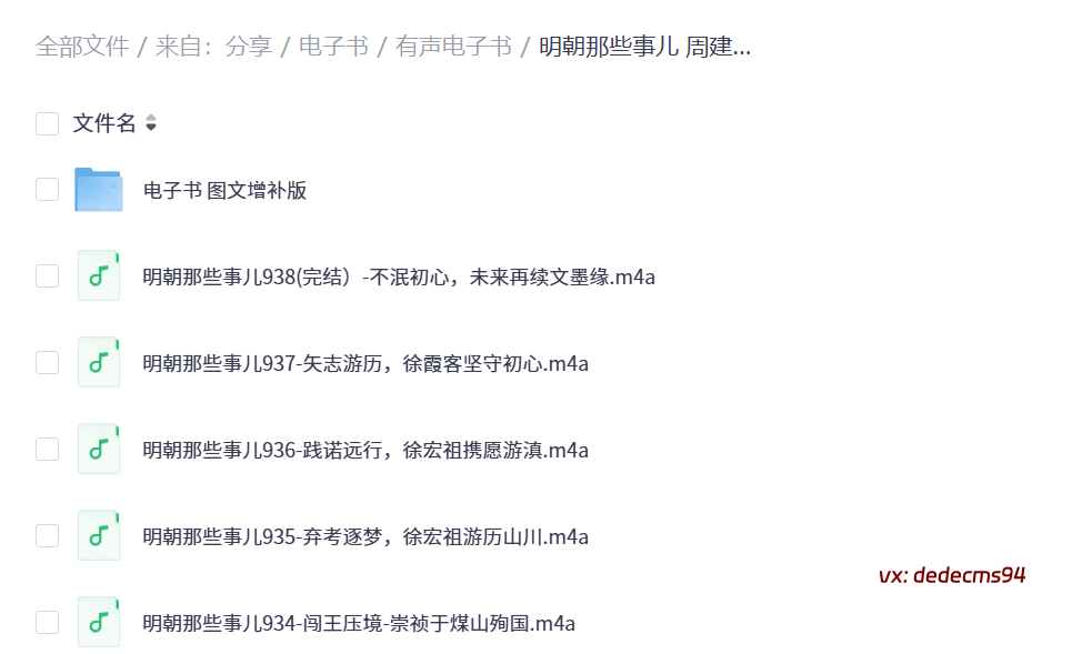 亮点:音频文件命名清晰,便于按兴趣选择收听,覆盖历史事件的多个维度,从政治、军事到个人命运,全方位解析明朝兴衰。