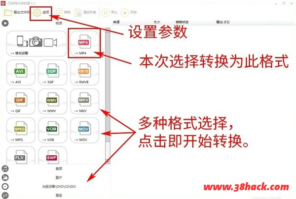 左边选择要输出格式MP4,同时你也可对此格式输出进行设置。