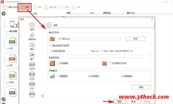 在【选项】处,设置自已的参数,如:输出路径等