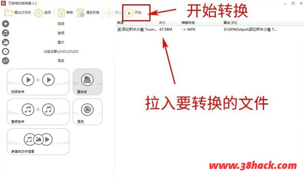 将要转换的视频拉入首页右边空白处。